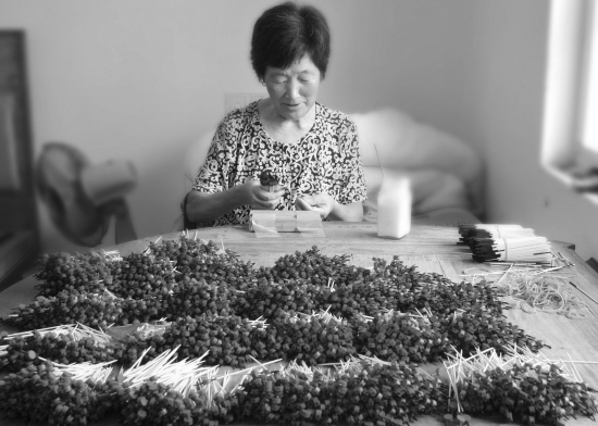 坐在家里来上班。在昆铜乡三山村,村里从50岁到60岁左右的妇女们每天坐在家里编制工艺品。来料加工实行按劳计酬,多劳多得,一天多则50元,少则30元。给村里的妇女们提供了一个增加收入的来源。 据介绍,昆铜三山村有60-70%的家庭参与有关“打火球”的竹制品的来料加工。 夏鹏飞 摄
