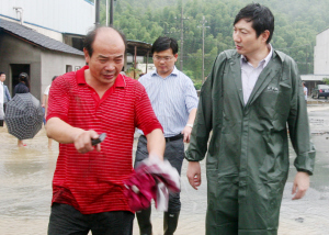 下午1时许,大雨时疏时密,唐中祥和县委常委、宣传部长叶海珍又深入碧门、霞泉等受灾严重的村庄,视察灾情,慰问受灾群众。