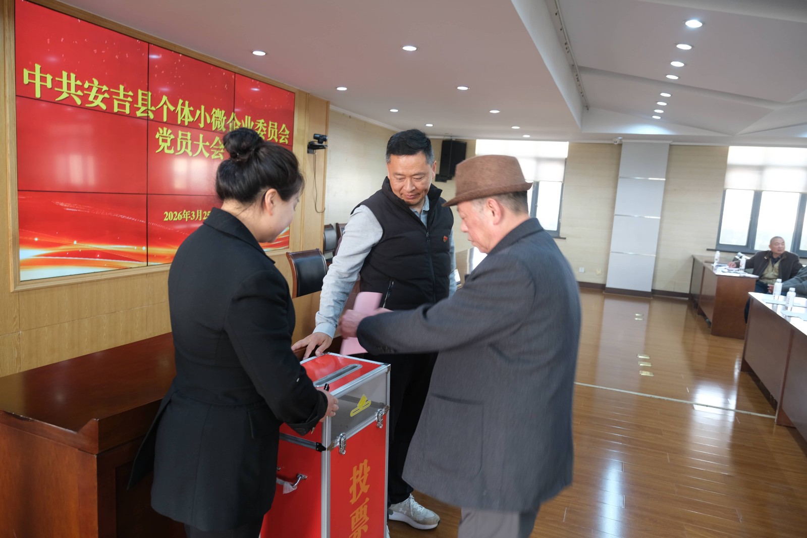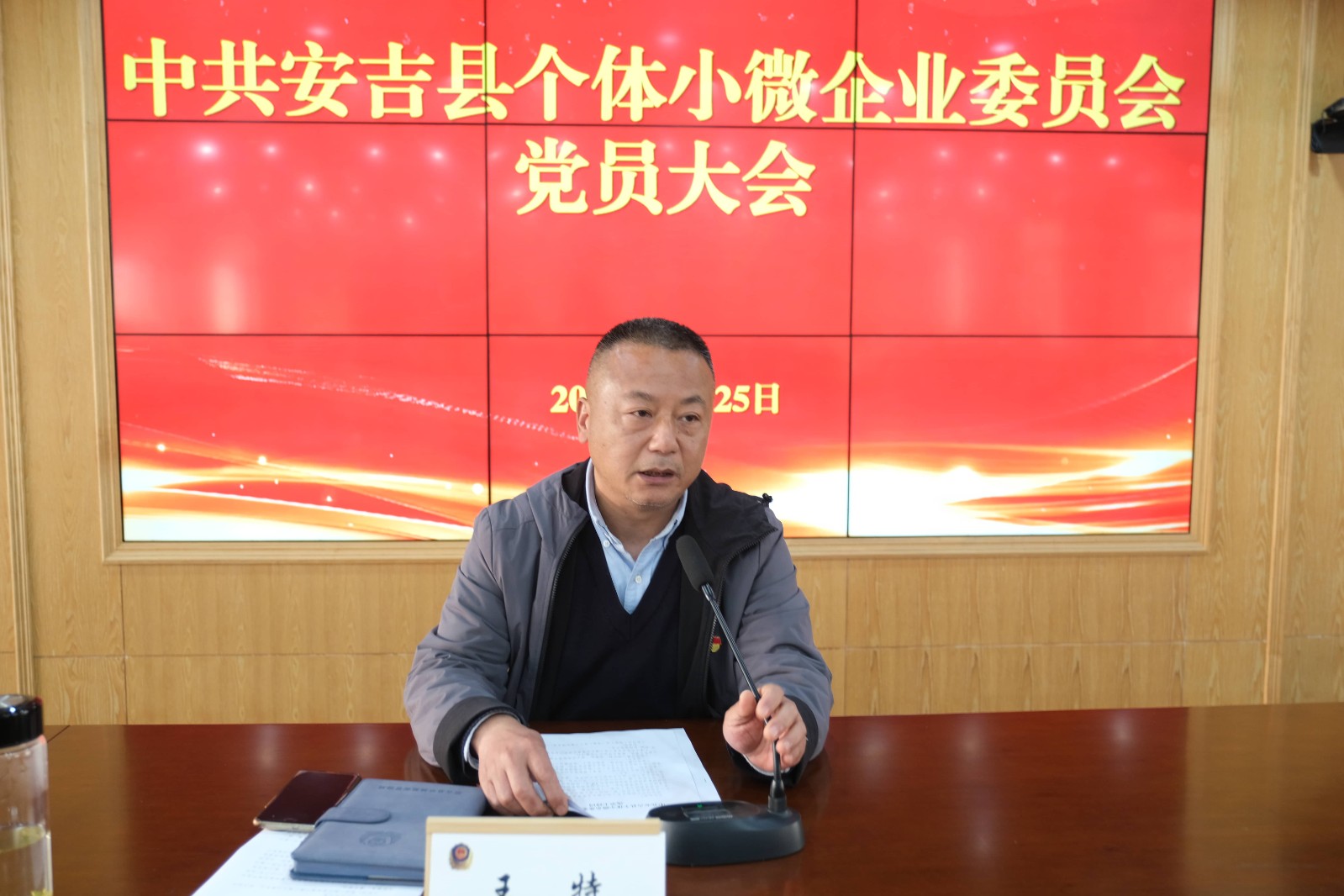 2026年3月25日,安吉县个体小微企业全体党员在县局六楼隆重举行集会,选举产生新一届中共安吉县个体小微企业委员会,会后,由新当选的中共安吉县个体小微企业党委书记王特同志给全体与会党员上了一堂主题为“凝心聚力谋发展 奋楫扬帆启新程”的党课。
